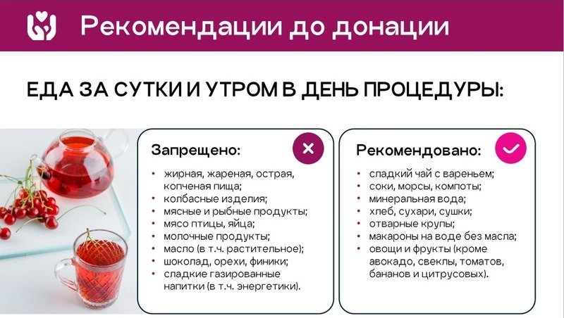 Медики напоминают, что стать донором может любой здоровый человек старше 18 лет и весом не менее 50 кг. За сутки перед донацией рекомендуют придерживаться специальной диеты, а после процедуры уделить внимание восстановлению организма.